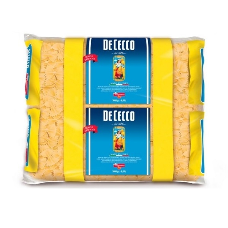 Bestellen Sie jetzt die De Cecco 0SX6093 Farfalle in der praktischen 3-Kilogramm-Packung und genießen Sie die italienische Pasta-Tradition in Ihrer eigenen Küche!