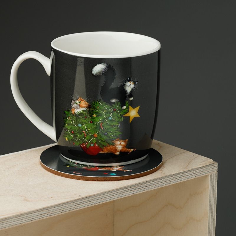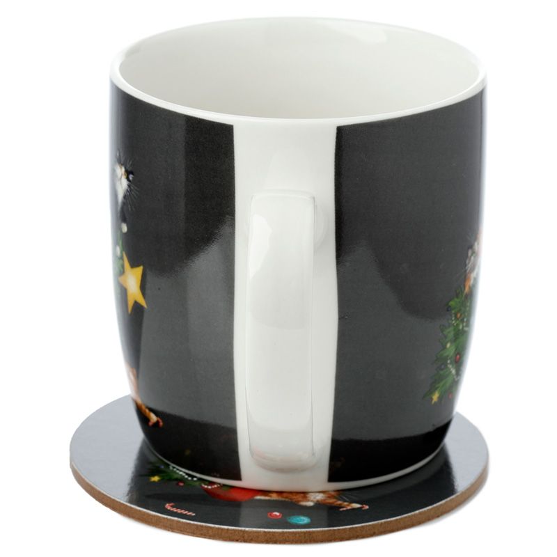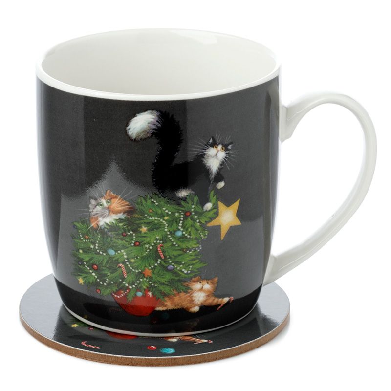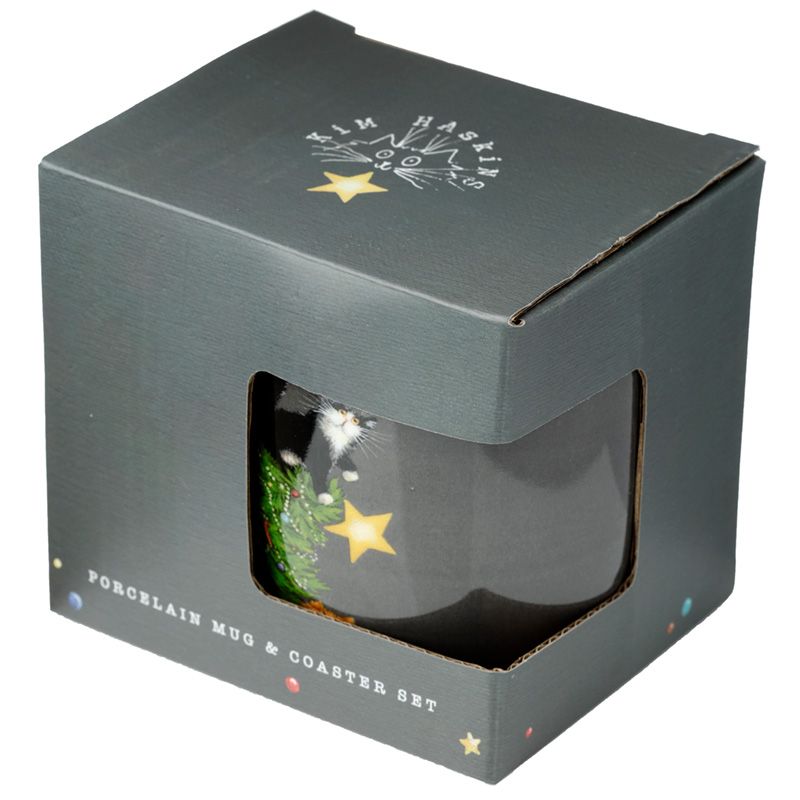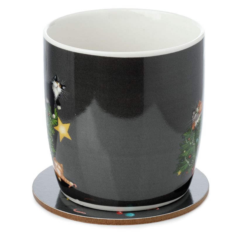 Kim Haskins Weihnachtsbaum Katze Tasse & Untersetzer Set aus Porzellan 300ml