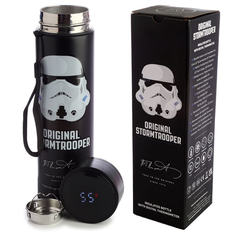 The Original Stormtrooper wiederverwendbare Thermo Isolier- Edestahl Trinkflasche mit Digital Thermometer 450ml