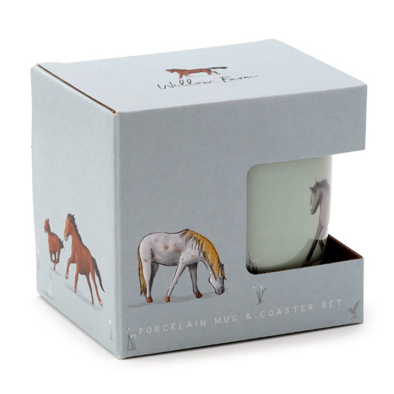 Das Willow Farm Pferde Tasse & Untersetzer Set ist die perfekte Wahl für Pferdeliebhaber und Landhausstil-Fans! Dieses charmante Set besteht aus einer stilvollen Porzellan-Tasse mit einem Fassungsvermögen von 300 ml und einem praktischen Untersetzer aus natürlichem Kork, der Oberflächen vor Hitze und Kratzern schützt.