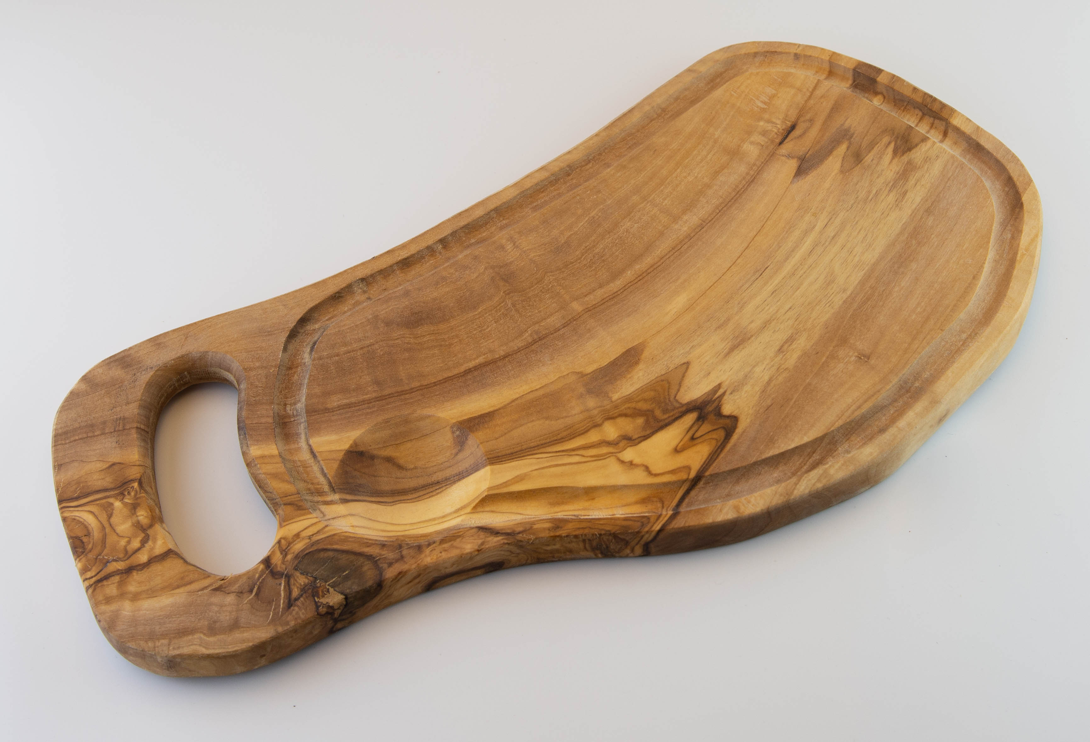 Dieses rustikale Servierbrett aus Olivenholz ist ein perfekter Begleiter für die Küche. Fühlt sich Edel und Wertig in der Hand an. Perfekt zum Schneiden von verschiedenen Lebensmitteln. Saft und Flüssigkeiten werden mit der Saftrille aufgefangen. Das Brett kann auch als Servierbrett für Brot, Käse, Fleisch oder andere Lebensmittel verwendet werden und eignet sich hervorragend zur Präsentation auf dem Tisch.
